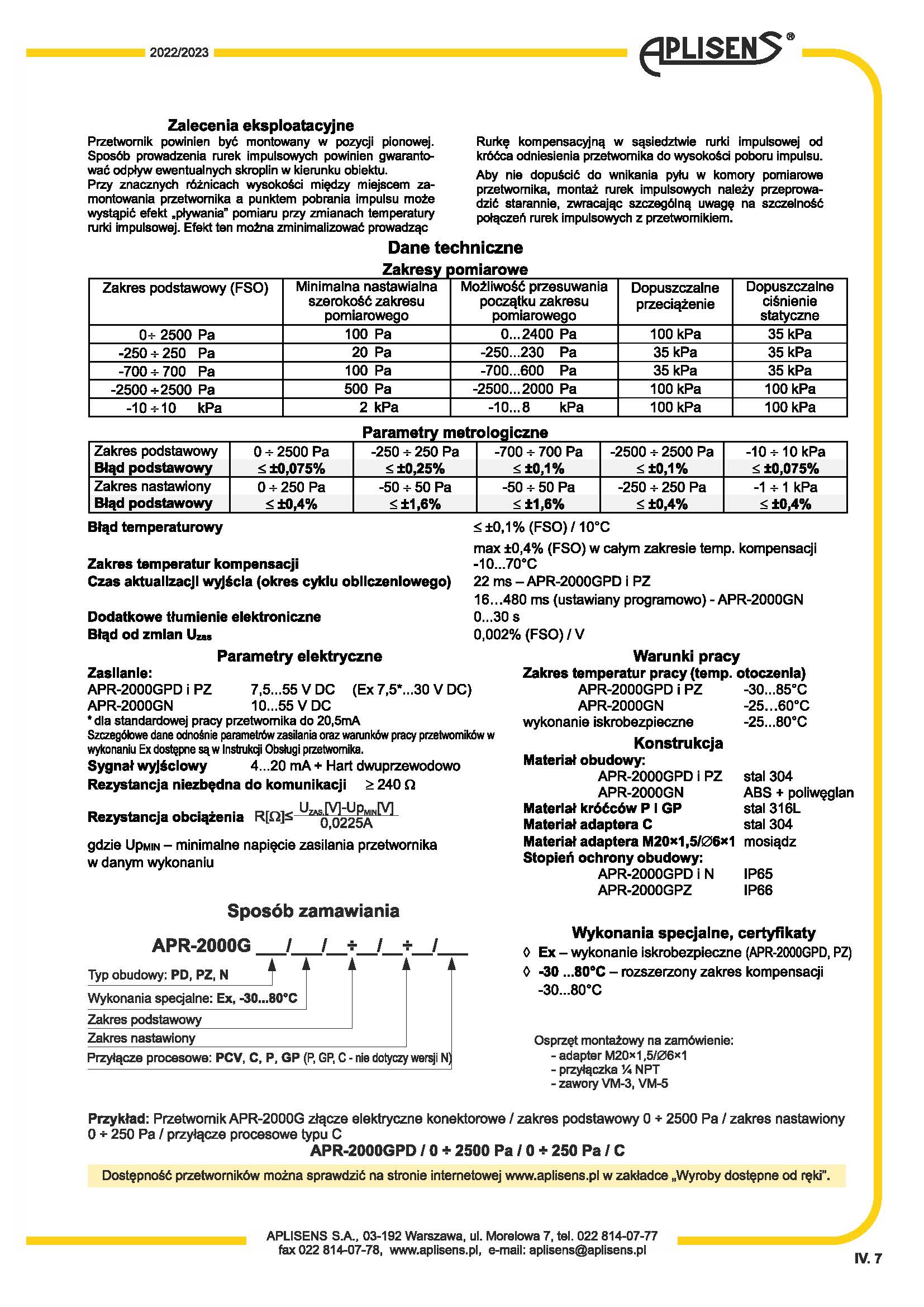智能型氣體差壓變送器APR-2000G-波蘭APLISENS