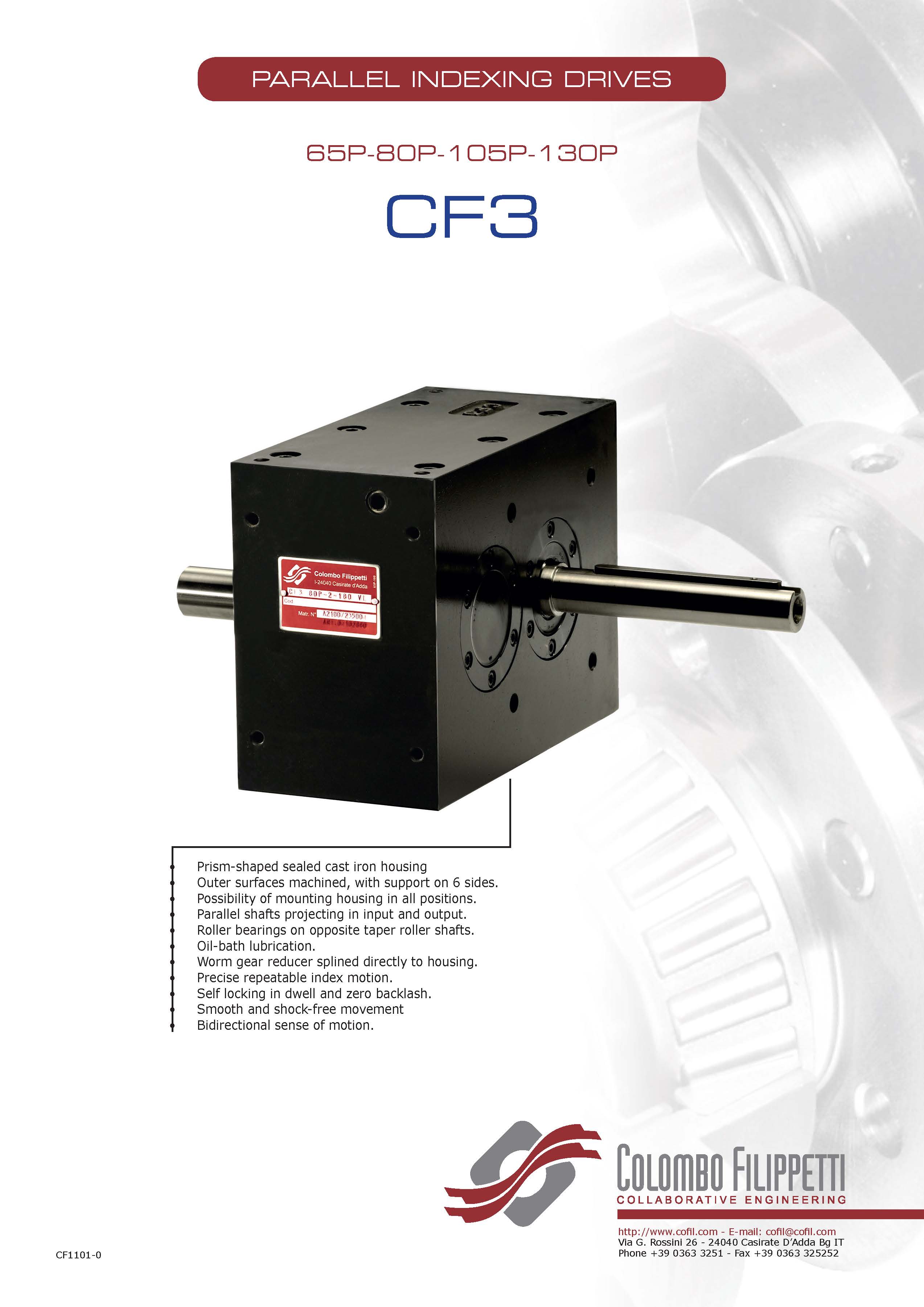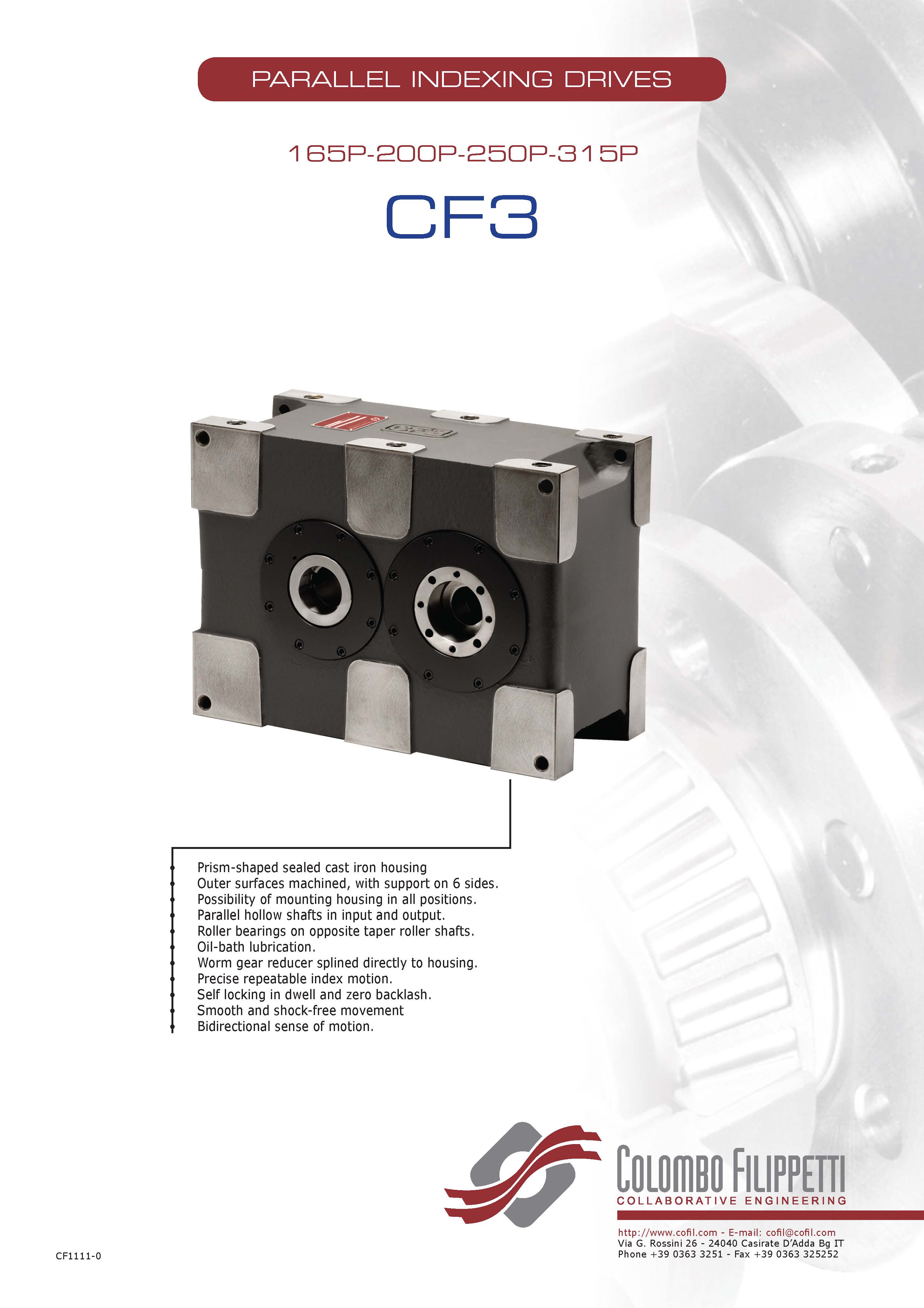 COLOMBO FILIPPETTI spa 的 CF3 驅動器是具有互補輪廓的雙平面凸輪機構,用于將均勻的輸入旋轉運動轉換為間歇運動。